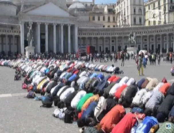 يركع آلاف المهاجرين المسلمين للصلاة في رمضان في إحدى الساحات الشهيرة بنابولي الإيطالية “بليشيبيتو”.
